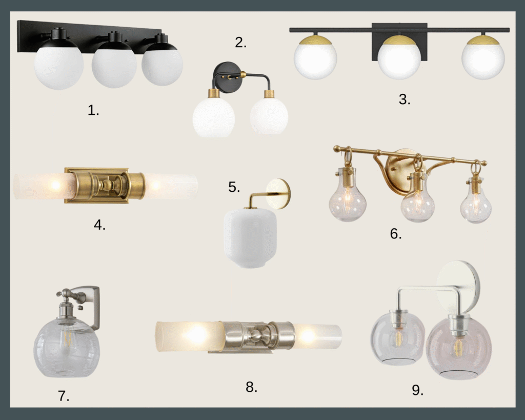 I have recently completed a few bathroom remodels and one of my favorite is choosing lighting. Here are a few over the mirror lights that caught my eye. Does your bathroom need a small update? Changing the lighting is a relatively easy and inexpensive way to update a space.